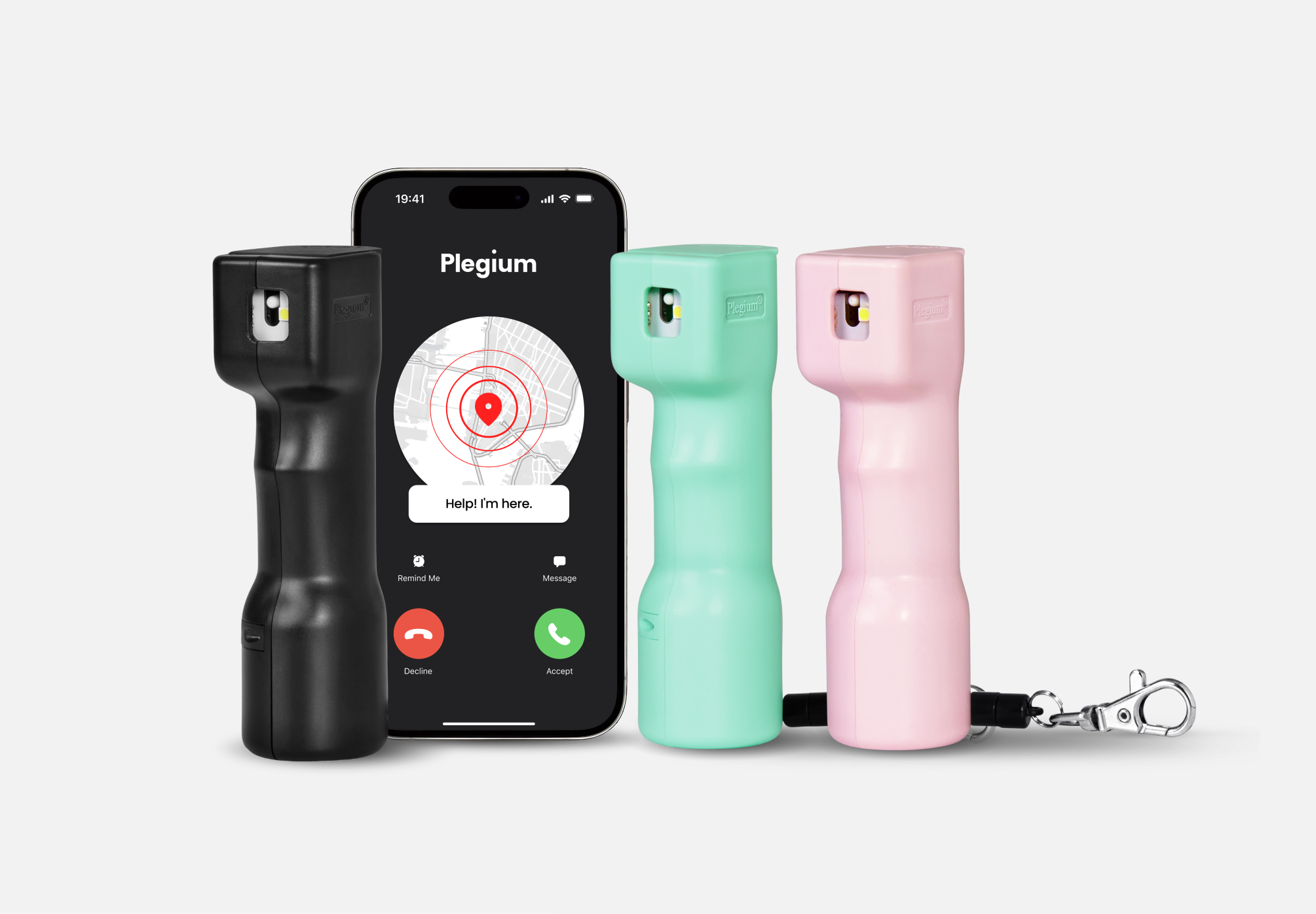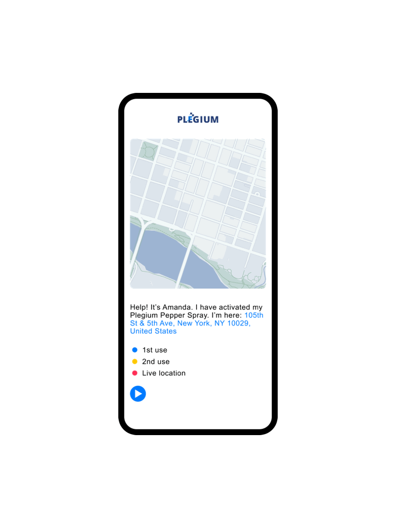 The Plegium app enhances your pepper spray into a connected safety tool, ensuring aid is readily available wherever you go.